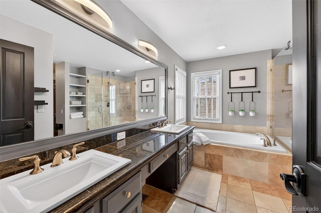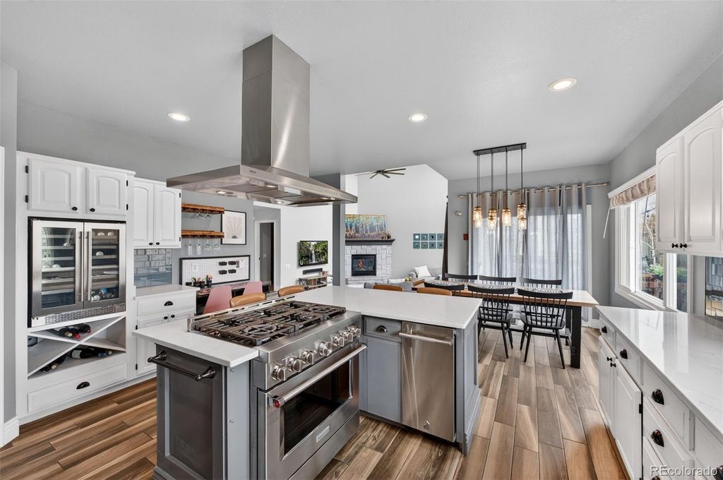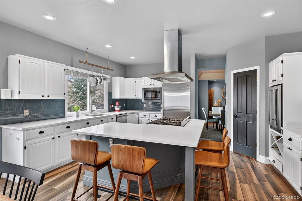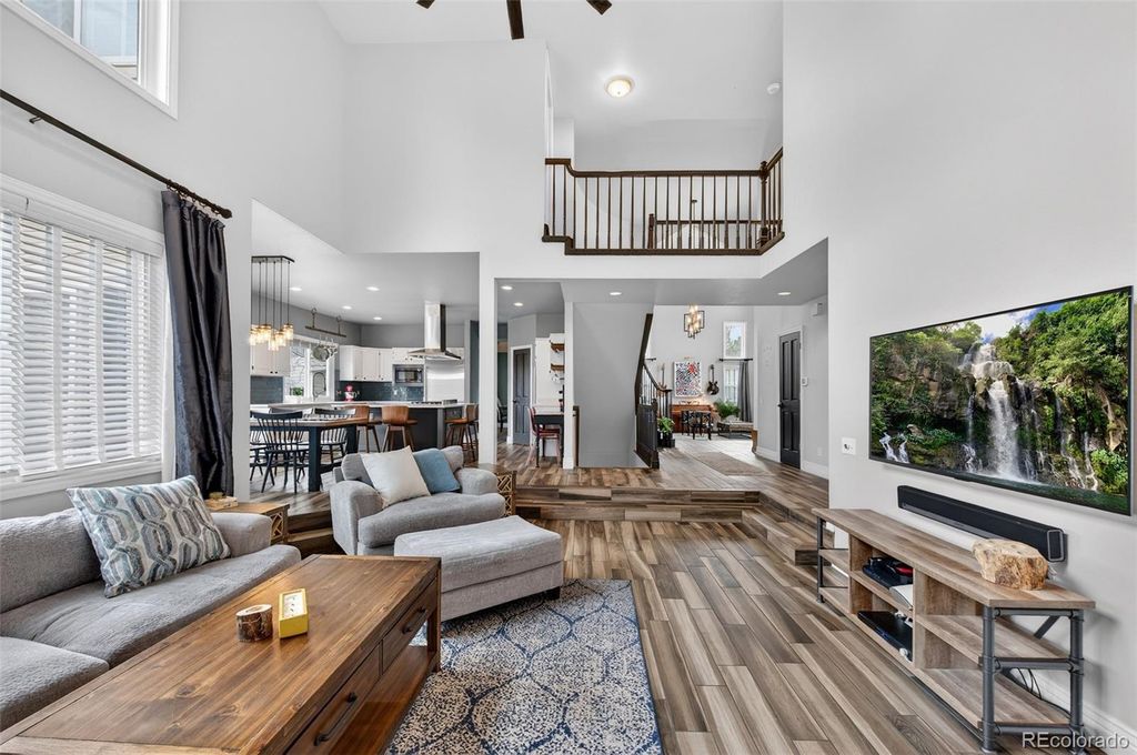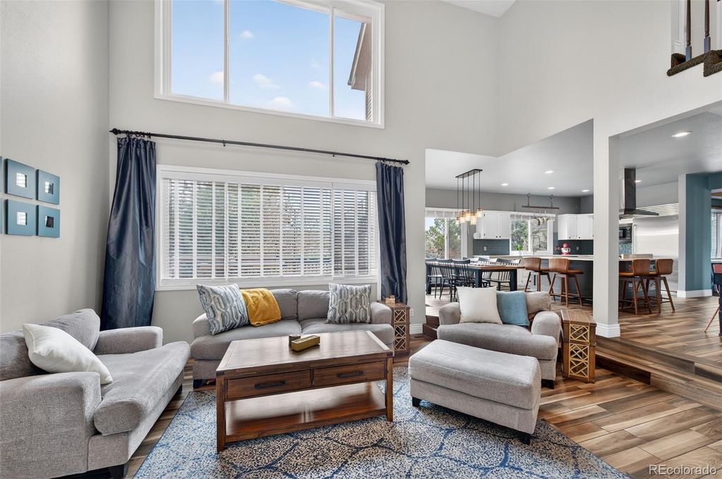 This gorgeous updated home is located in the heart of Ken-Caryl Valley. The moment you walk in the grand entryway of this beautiful home you are greeted by gleaming hardwood flooring, vaulted ceilings, and modern light fixtures. The remodeled kitchen was completed in 2022 and features a new gas stove with hood vent, high end SubZero refrigerator, new dishwasher, a new wine fridge, and a spacious walk-in pantry and breakfast nook. Open concept design flows seamlessly into the family room with cozy gas fireplace which makes this home such a functional floorplan for entertaining. A dedicated private office is also on the main level as well as formal dining and a second living room for multiple living spaces. Updated bathrooms add a clean, modern feel throughout the home and the newer windows improve both style and efficiency. Upstairs you'll find new carpet throughout and four bedrooms including the oversized primary suite that affords plenty of room with multiple seating areas and a 5 piece ensuite bath with walk-in closet. Downstairs the walkout basement expands your living space and includes new carpet and a second gas fireplace. So many upgrades include a newer roof, new hot water heater, new AC, and a new Nest thermostat. Outdoor living at its finest with a gas firepit patio in the front of this home and a Trex deck off the kitchen with durability and low maintenance in mind. Live the Ken-Caryl lifestyle in this beautiful home with world class amenties including 3 swimming pools, 22 tennis/pickleball courts, award winning schools, an equestrian center, and over 80 miles of private hiking trails and open space.