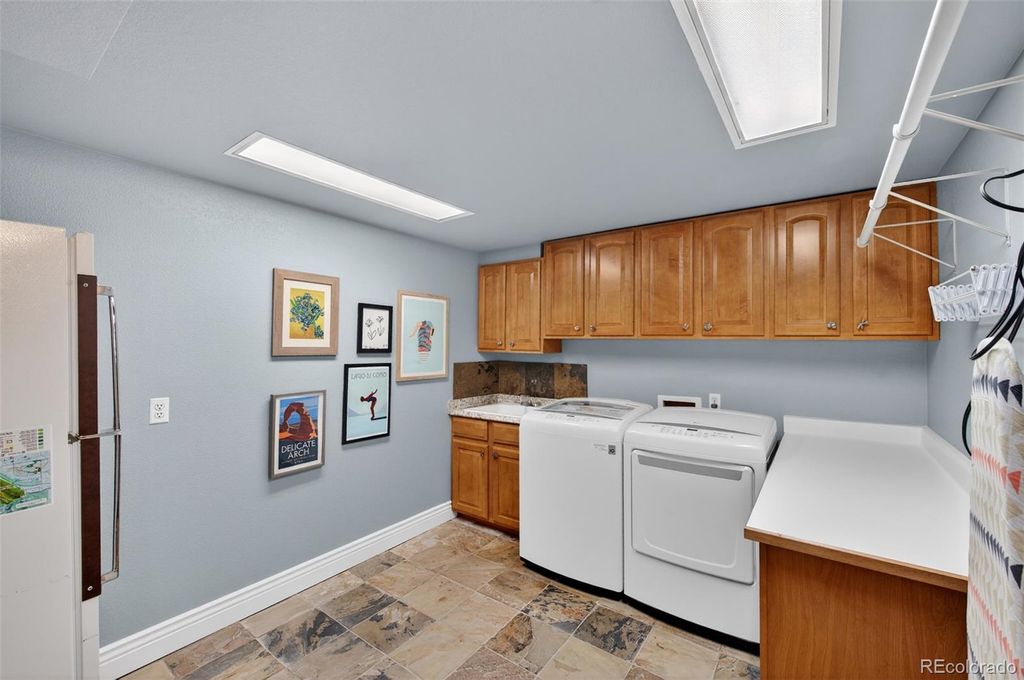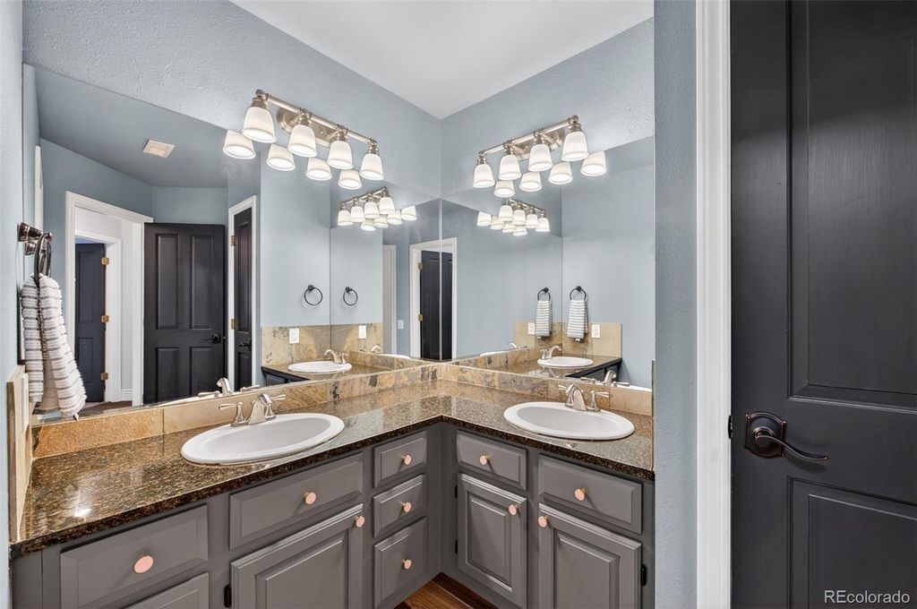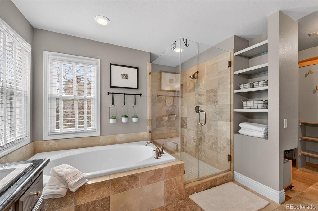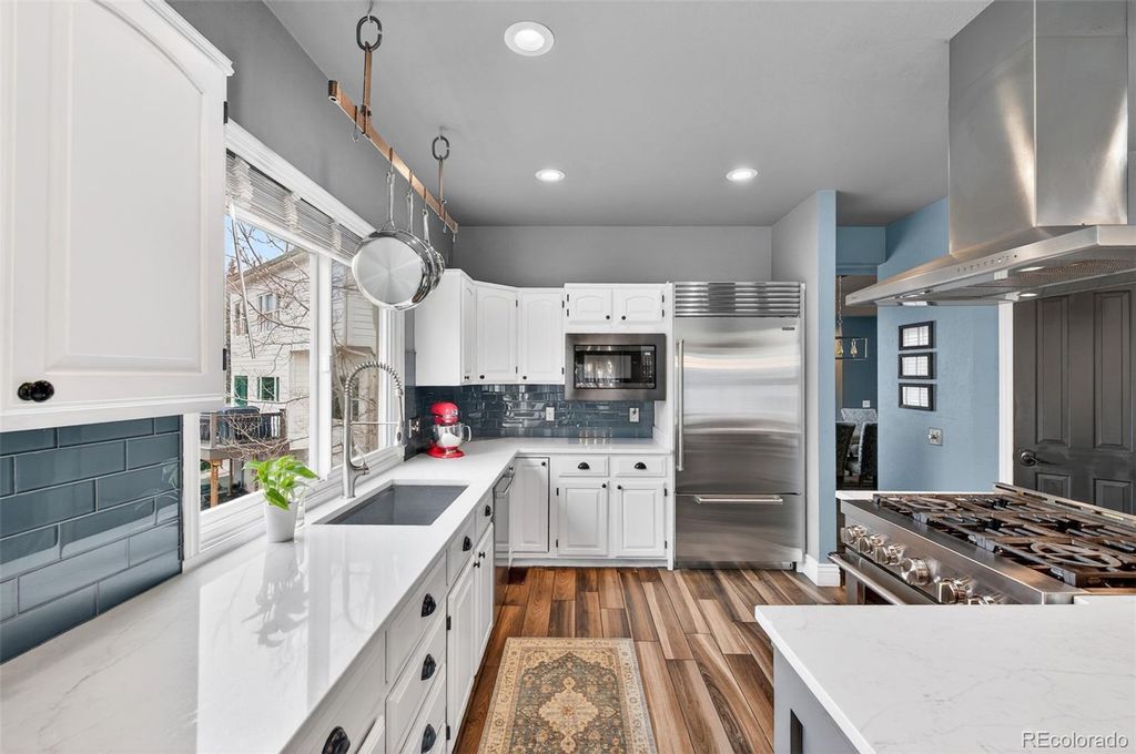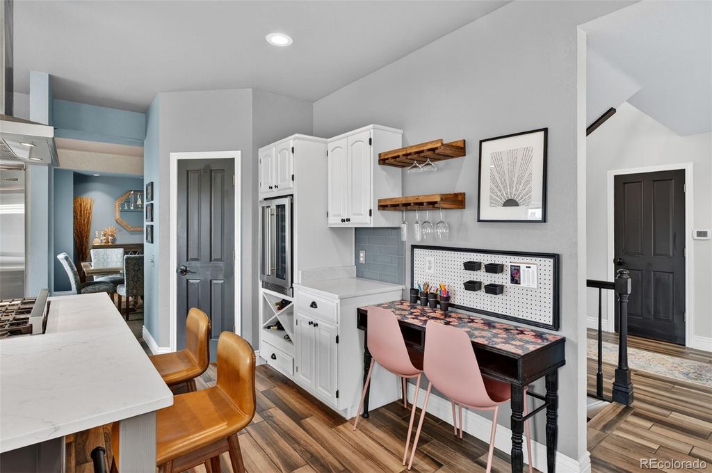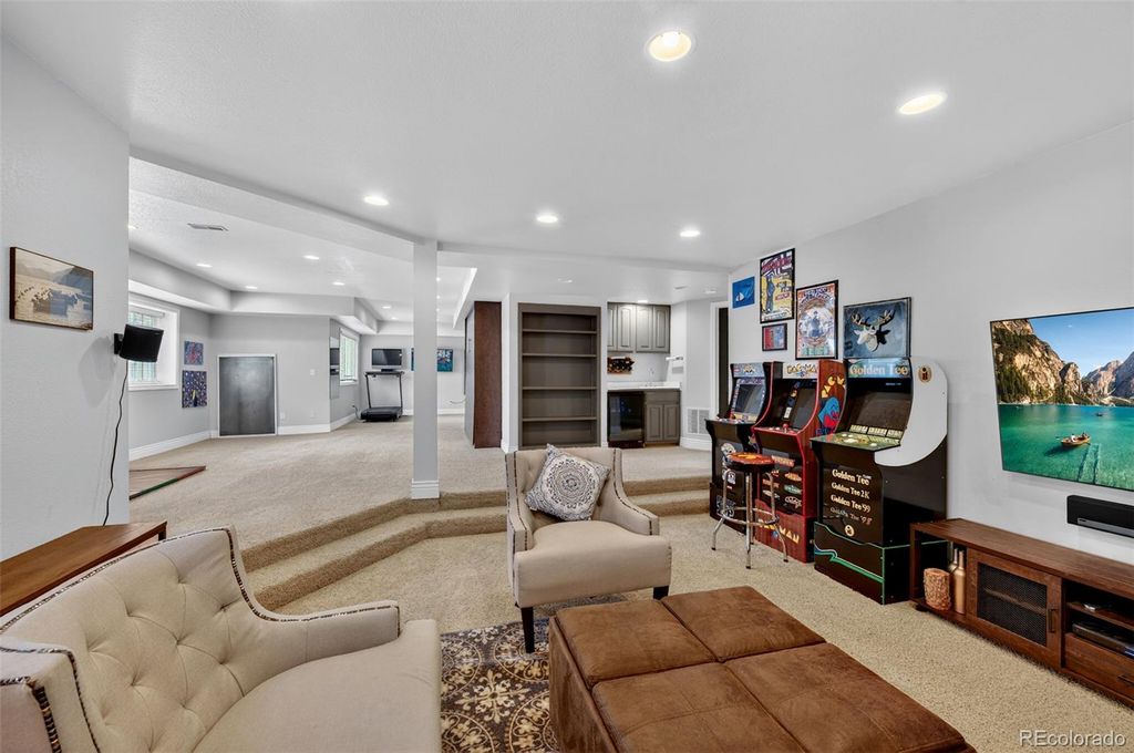 This gorgeous updated home is located in the heart of Ken-Caryl Valley. The moment you walk in the grand entryway of this beautiful home you are greeted by gleaming hardwood flooring, vaulted ceilings, and modern light fixtures. The remodeled kitchen was completed in 2022 and features a new gas stove with hood vent, high end SubZero refrigerator, new dishwasher, a new wine fridge, and a spacious walk-in pantry and breakfast nook. Open concept design flows seamlessly into the family room with cozy gas fireplace which makes this home such a functional floorplan for entertaining. A dedicated private office is also on the main level as well as formal dining and a second living room for multiple living spaces. Updated bathrooms add a clean, modern feel throughout the home and the newer windows improve both style and efficiency. Upstairs you'll find new carpet throughout and four bedrooms including the oversized primary suite that affords plenty of room with multiple seating areas and a 5 piece ensuite bath with walk-in closet. Downstairs the walkout basement expands your living space and includes new carpet and a second gas fireplace. So many upgrades include a newer roof, new hot water heater, new AC, and a new Nest thermostat. Outdoor living at its finest with a gas firepit patio in the front of this home and a Trex deck off the kitchen with durability and low maintenance in mind. Live the Ken-Caryl lifestyle in this beautiful home with world class amenties including 3 swimming pools, 22 tennis/pickleball courts, award winning schools, an equestrian center, and over 80 miles of private hiking trails and open space.